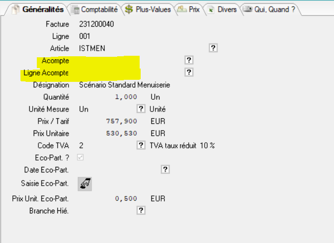 Ces deux champs permettent dâavoir une traçabilitĂ© entre les lignes de facture dâacompte et les lignes de facture produit.