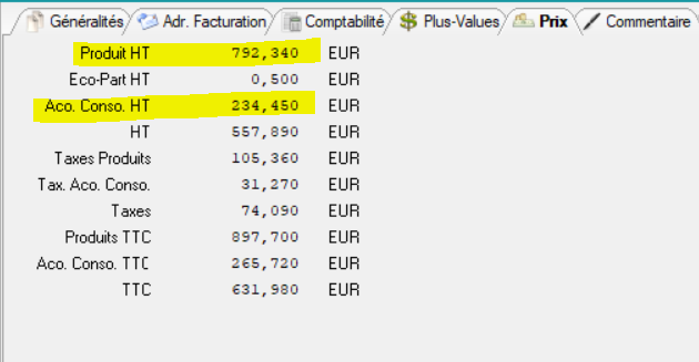 CdeFacPriProHt : montant HT Produit ( total de tous les montants HT des lignes de type produit de la facture hors acomptes )