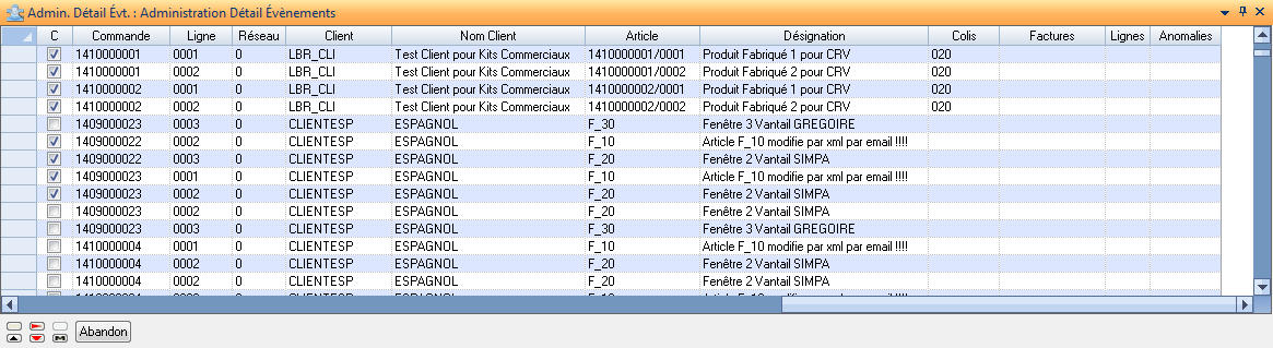 Cette branche applicative permet de gérer le contenu des événements logistiques validés.