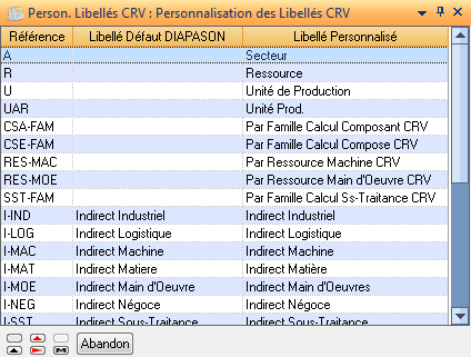 Cette application permet de se personnaliser les libellés rencontrés dans le module ‘Coût de Revient’. Cette application se situe dans le bureau « Exploitation » -> Paramétrage Exploitation.