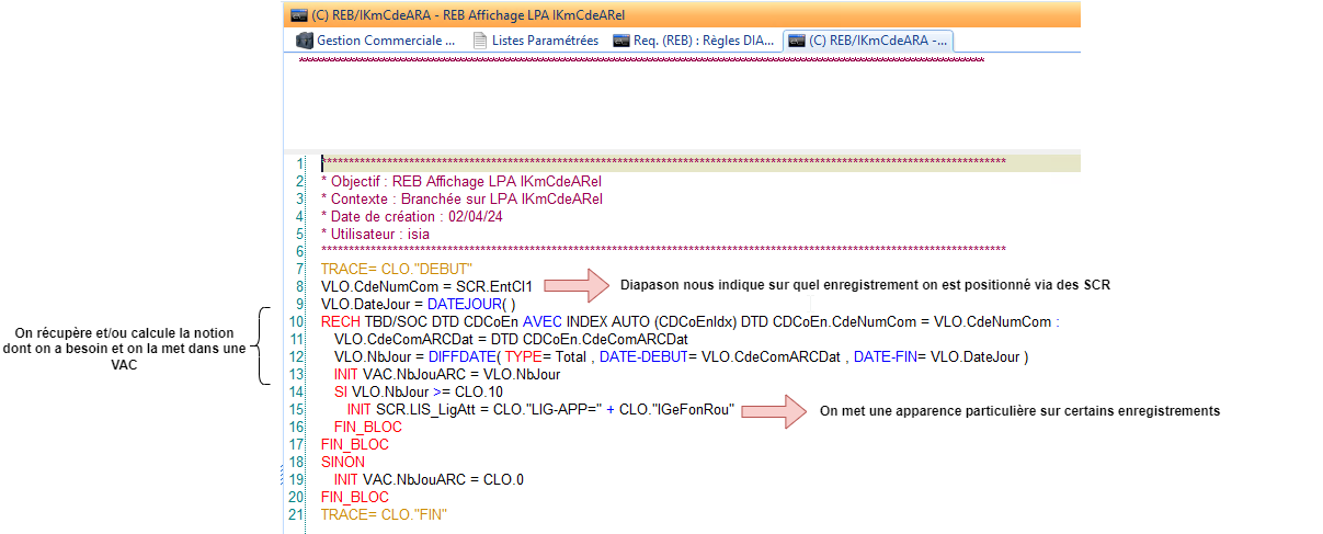 Elle reçoit en contexte (variables SCR) les informations relatives à l’enregistrement sur lequel on est.