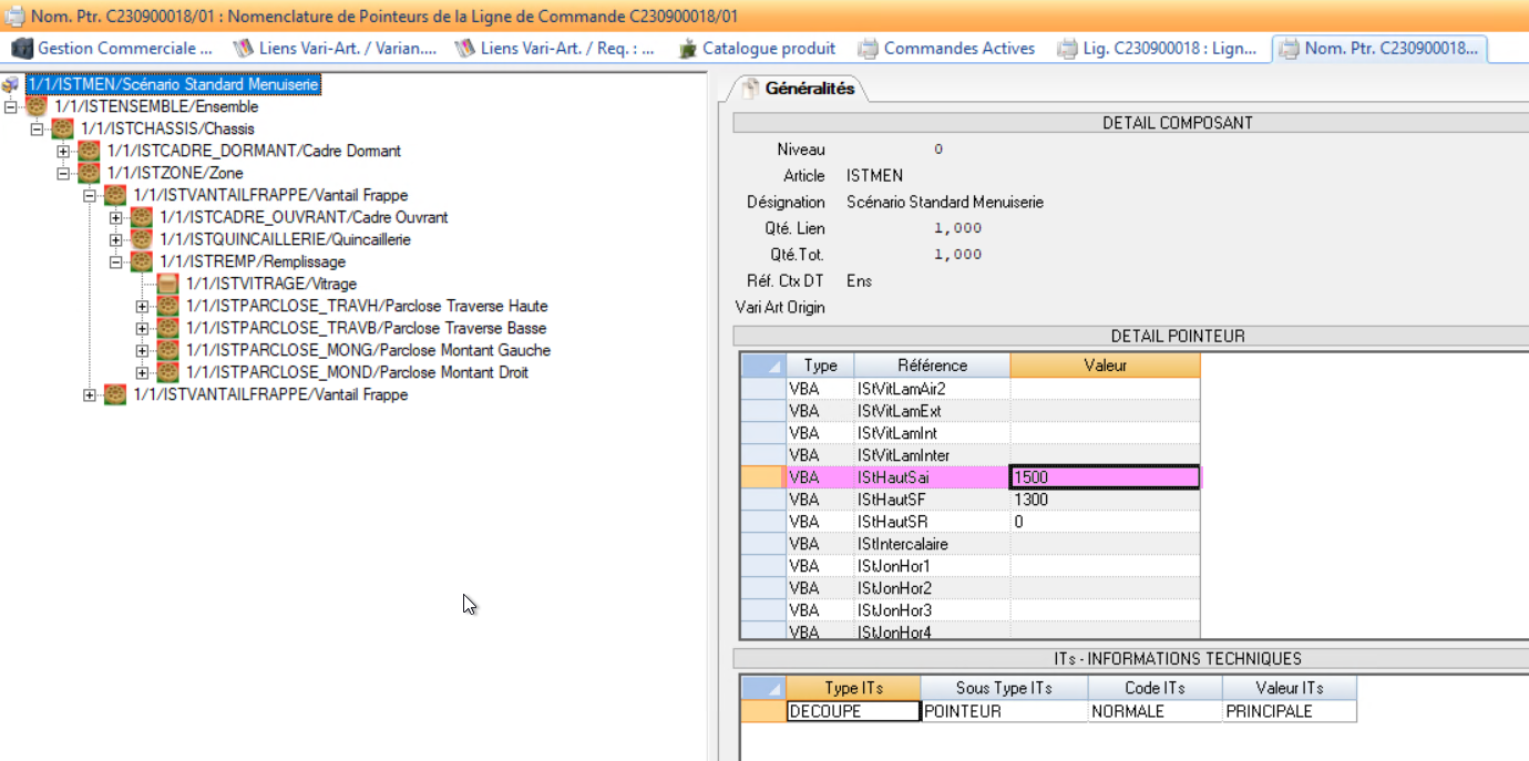 On peut alimenter les variantes d’un vari-article à partir de toutes les VBA disponibles sur la branche de ce vari-article dans la nomenclature de pointeurs.