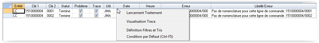 PARCOURS NOMENCLATURE DEFINITION ENTITE= LIG.CDE , NUM.CDE= CLO."1510000018" , LIG.CDE= CLO."001" , ERREUR= VLO.ErrDeb :