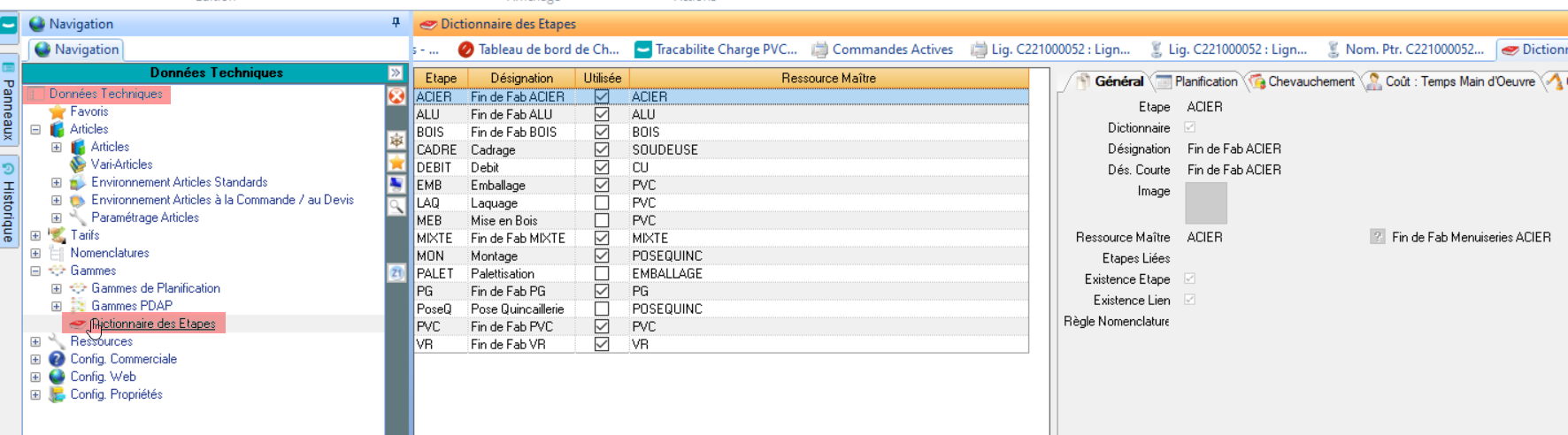 Or, dans la nomenclature, on a associés des étapes de gammes aux différents articles dans les informations techniques !