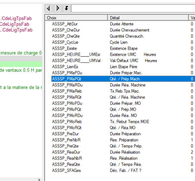 Il y a une particularité dans les RGG: les variables qui y sont proposées dépendent de la gamme ! Par exemple, dans une RGG pour la gamme PRDSPE, qui comprends l'étape ASSPE on va pouvoir gérer les informations suivantes: