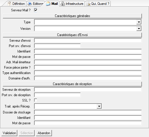 La configuration d’un serveur de messagerie passe par l’application des serveurs d’édition. L’onglet « Mail » est pleinement consacré au paramétrage du serveur de messagerie.