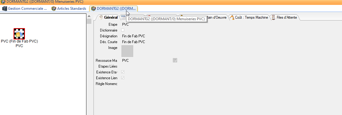 Pour toute information gérée au niveau d'une étape, une variable est mise à disposition : variable « durée d'attente », « durée de réalisation »..., mais aussi toute variable propre à chaque centre de charge. Elles possèdent toutes une valeur par défaut initialisée au niveau de l'étape, mais dont l'existence et la valeur peuvent être conditionnées par une requête.