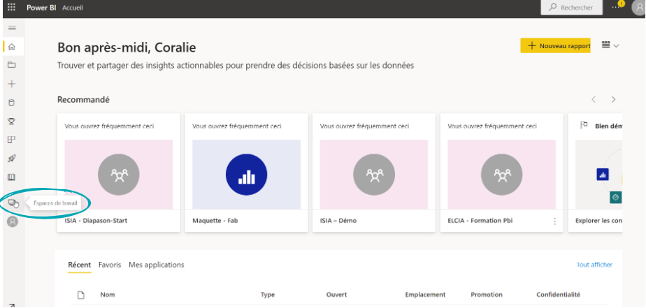 Une fois publiés, les rapports sont disponibles selon l’espace de travail spécifié; il en existe deux: