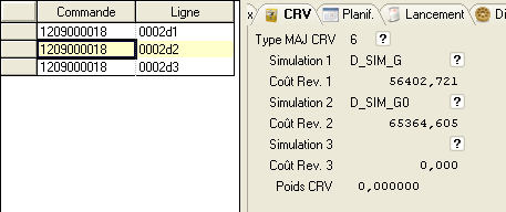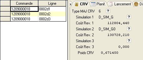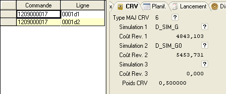 Seule la colonne « CRV » est affichée, les colonnes informatives «Coe. », « UME », « Rebut » et « Prix » sont vides.