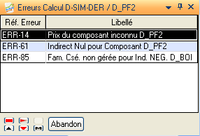 Cette action n’est disponible que si un calcul a été effectué. Cette liste présente les erreurs générales ainsi que les erreurs par article.