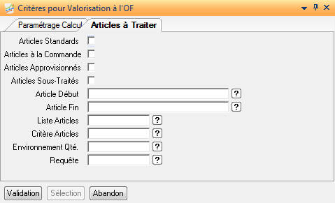Mode sélection (Articles à calculer): Permet de choisir un mode de sélection des articles à calculer :