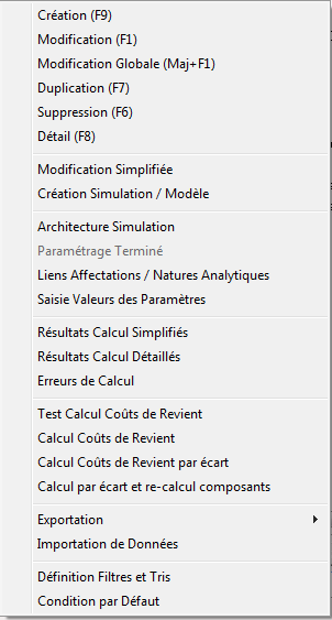 1 : Par Simulation. Le calcul de coût de revient s’effectue à partir des caractéristiques de la simulation et pour le type de calcul indiqués par la suite..