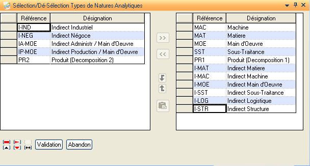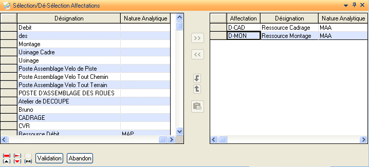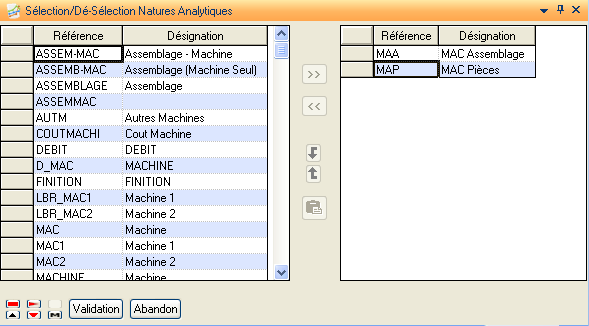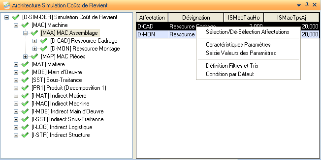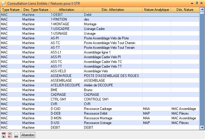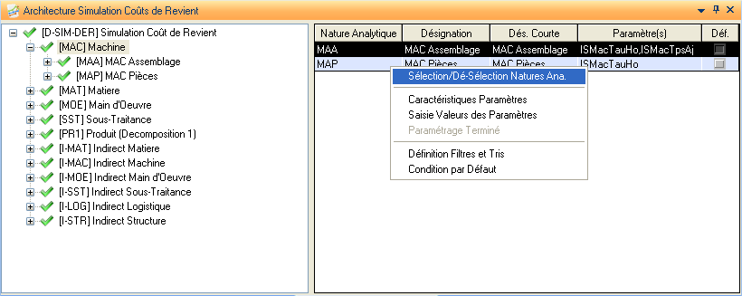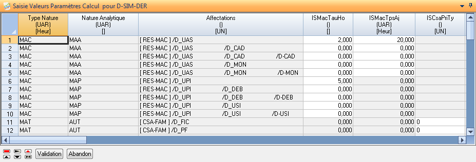 Cette action présente une liste de tous les liens (cas d’emplois) affectations / natures analytiques définis dans la structure de la simulation courante.