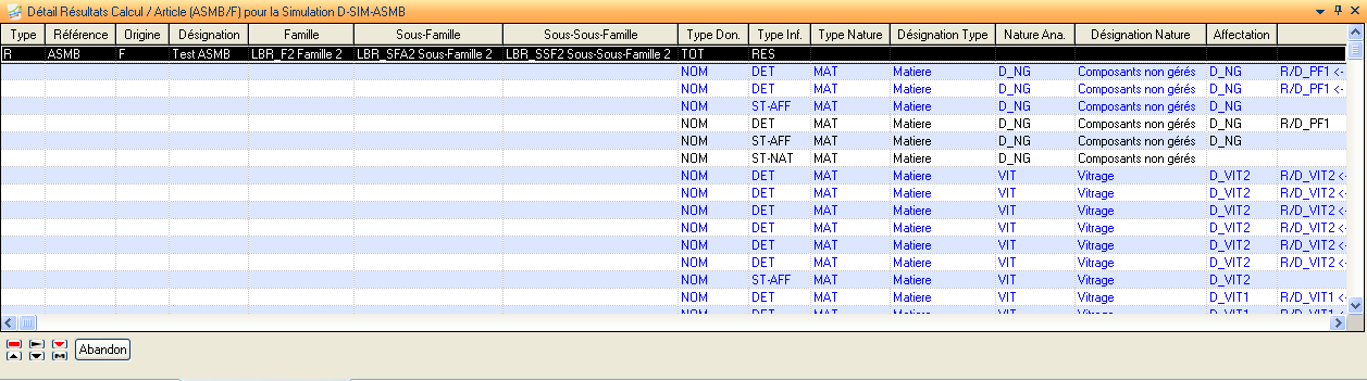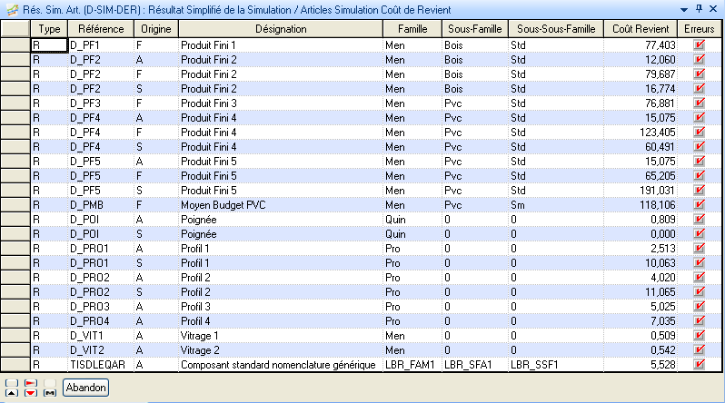 Cette action est très utile pour vérifier le paramétrage tant au niveau de la simulation qu’au niveau des articles.