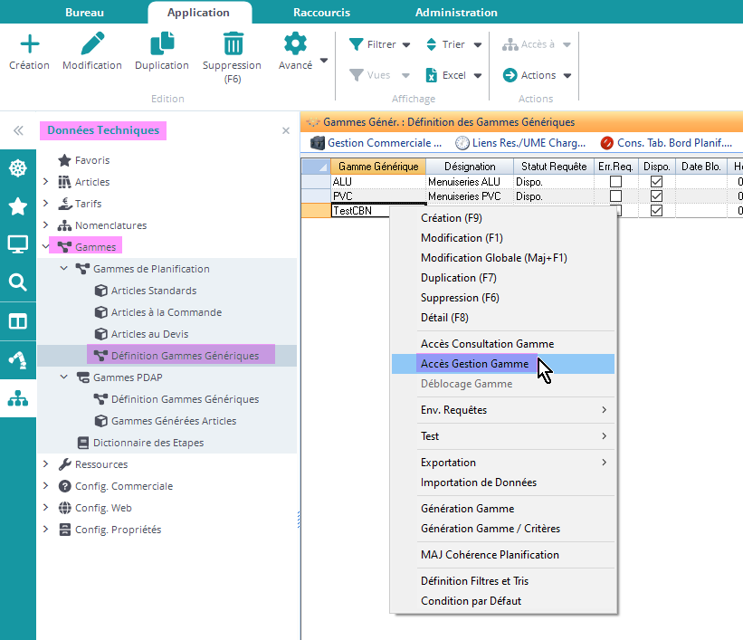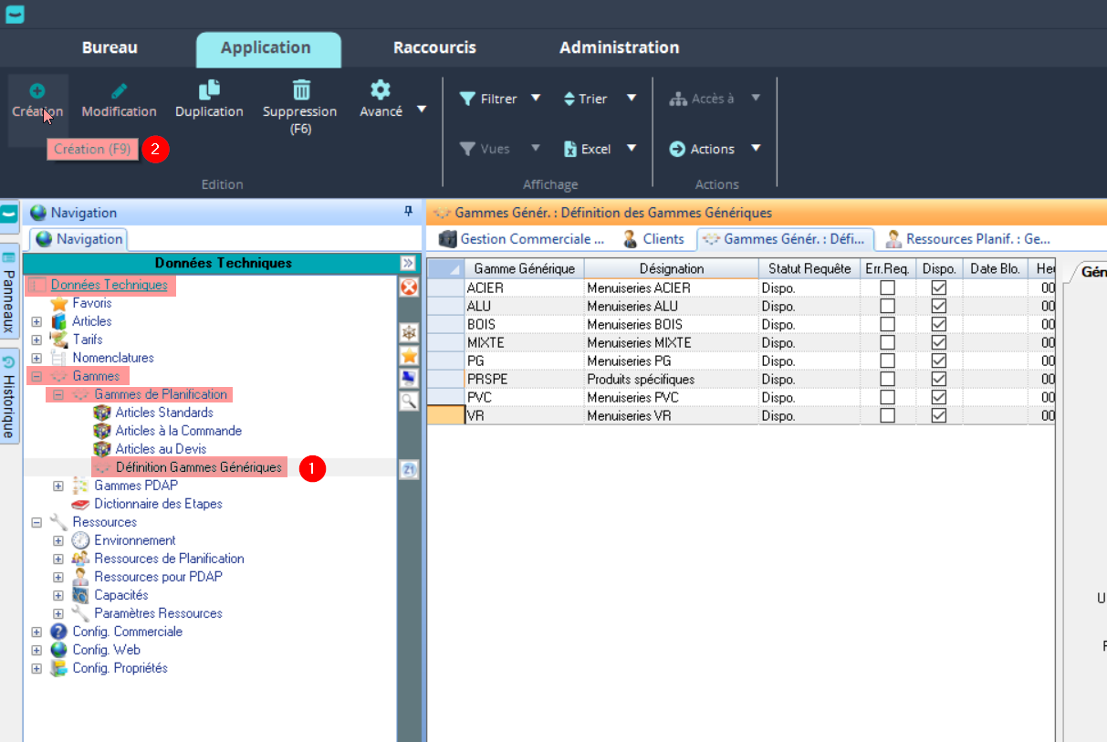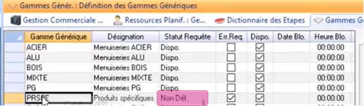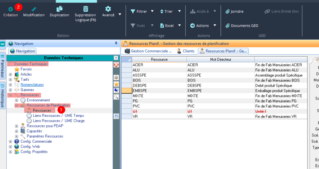 Par exemple la ressource “centre d’usinage CU” peut être utilisée en début de gamme pour les profilés principaux, et plus tard dans la gamme pour les profilés complémentaires