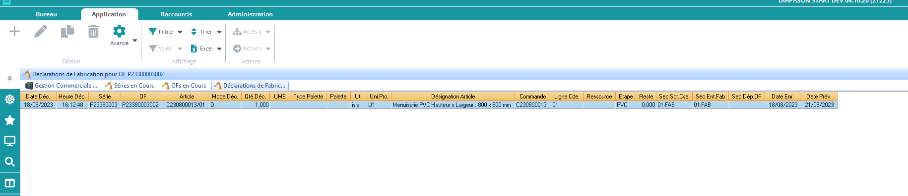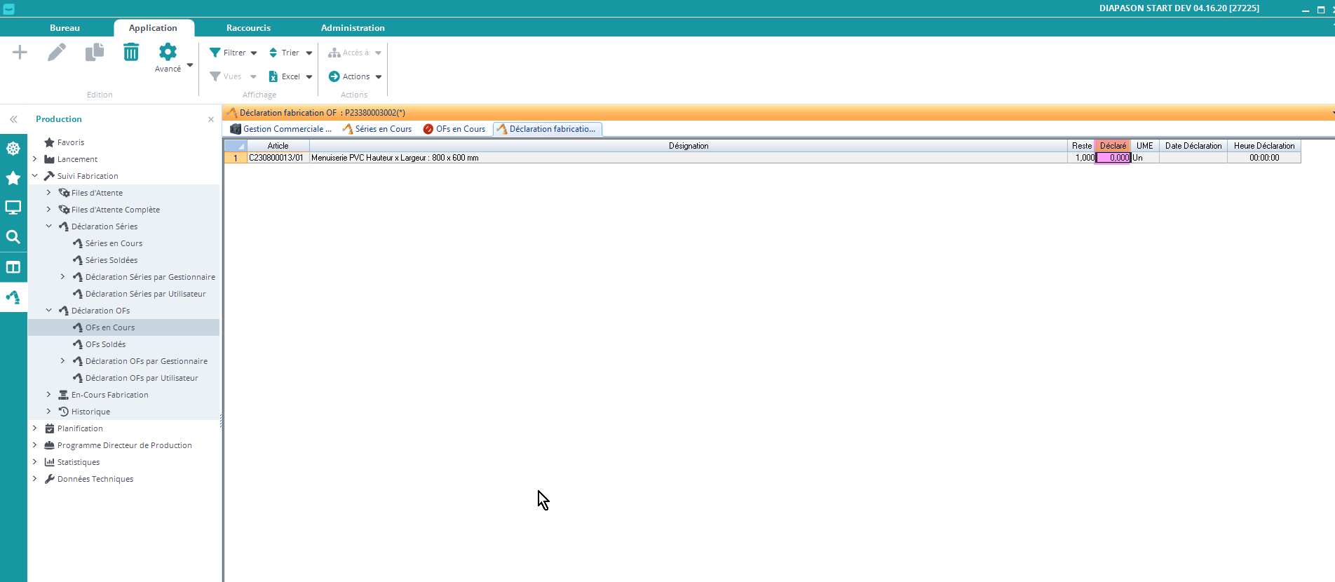 Déclarer un Ordre de Fabrication