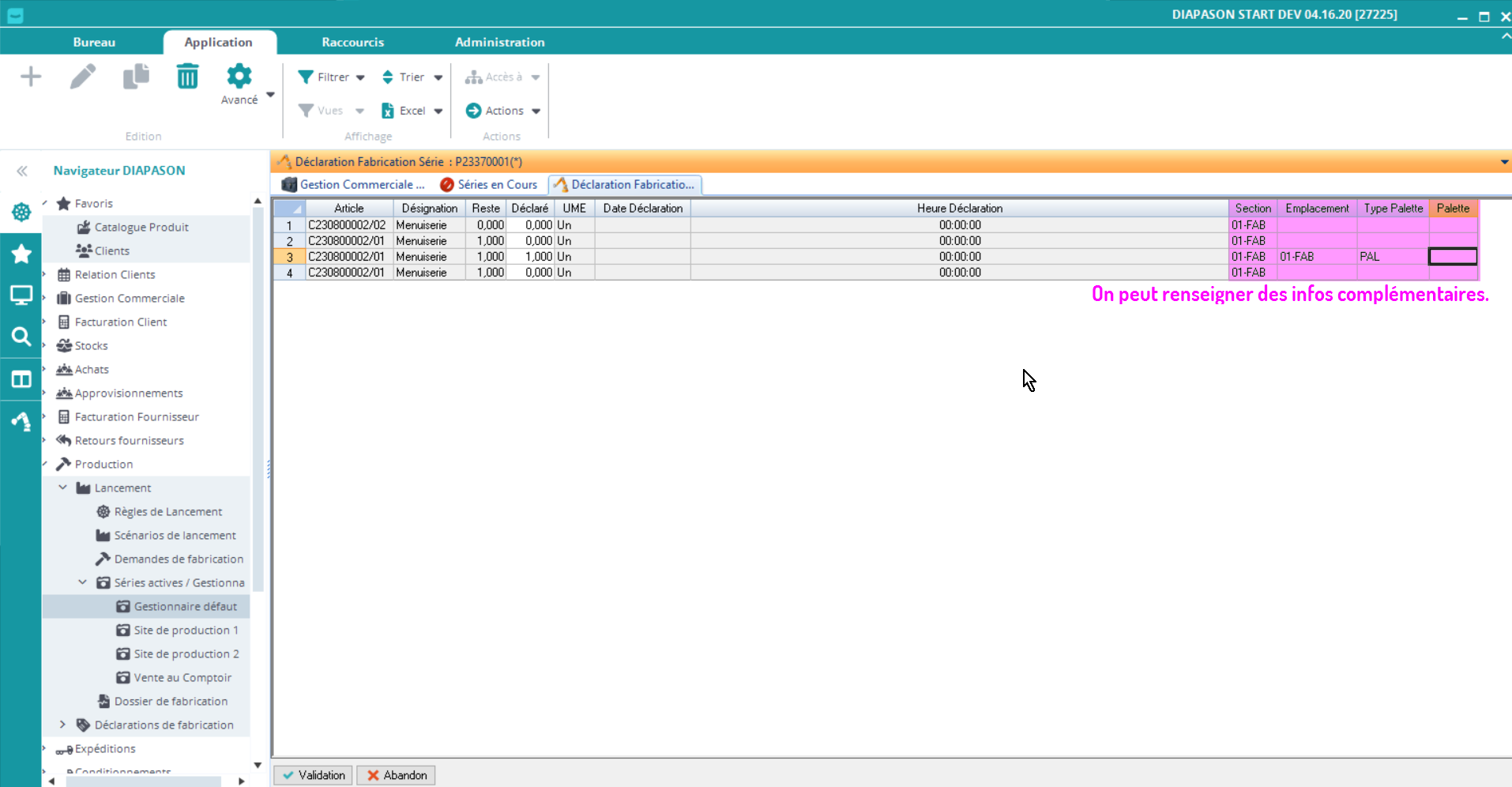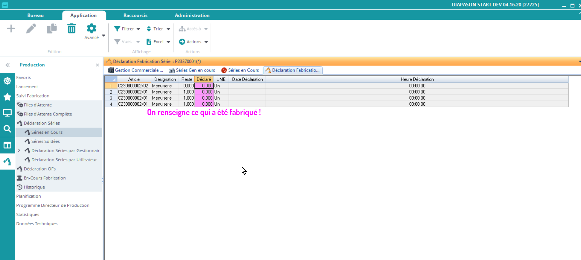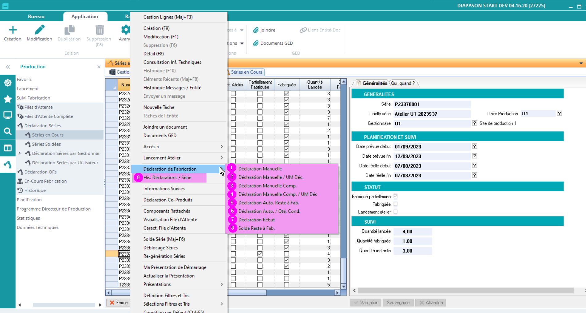 Les séries sont créées manuellement, ou lors du lancement en production. Une fois la série réalisée, on peut venir la déclarer ! Pour cela, il existe différentes options: