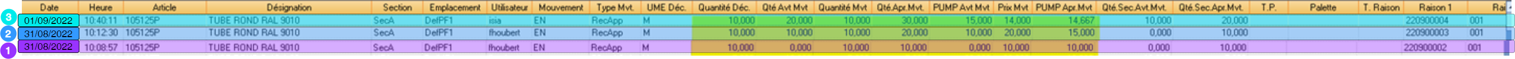 Ainsi vous comprendrez que le PUMP est calculé à une date donnée ! Sans date, il n’a pas de sens… et il est donc calculé à chaque fois qu’on a un mouvement de stock, sinon il est fixe.