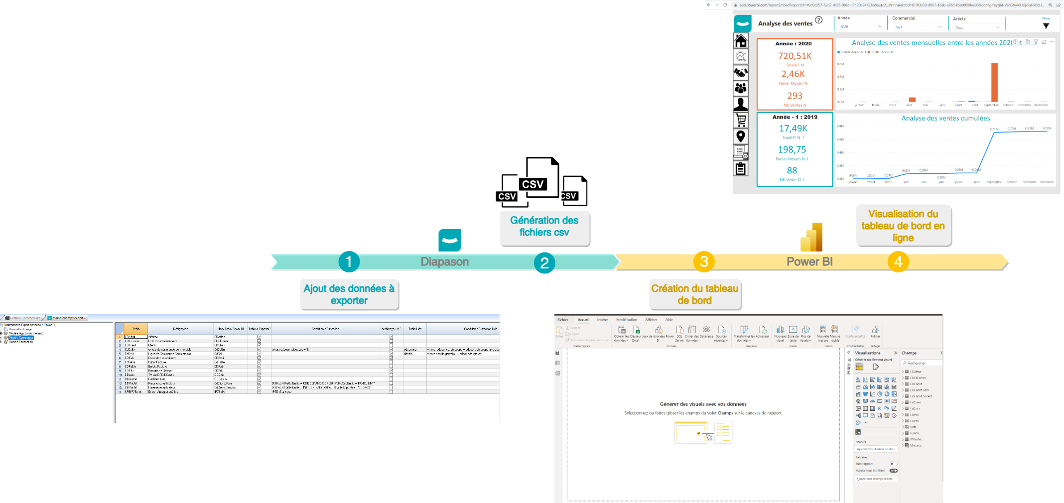 Le but de cette fonctionnalité est d’interfacer diapason avec un outil de Business Intelligence. La Business Intelligence (ou BI) désigne des technologies, applications de collecte, d’intégration, d’analyse et de présentation de l’information. Le grand atout de ces outils est le fait d’avoir des rapports personnalisés avec une vue d’ensemble. Cela va ainsi permettre d’accélérer et d’améliorer la prise de décision, d’optimiser les processus, d'augmenter l’efficacité opérationnelle. Le logiciel de BI sélectionné ici sera Power BI.