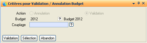 Budget : Présente la référence du budget à valider. Zone non Saisissable.