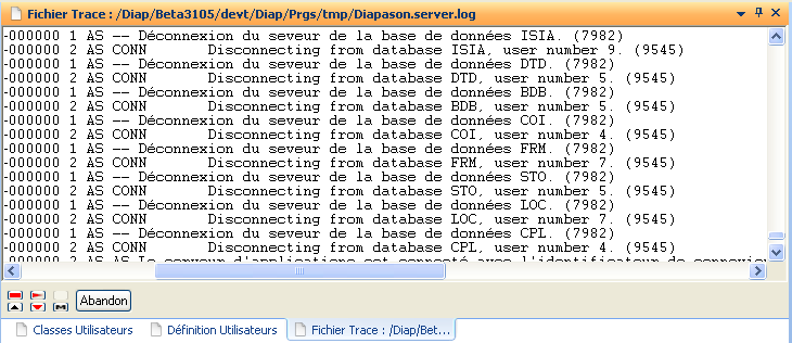 Trace Serveur DIAPASON: Présentation de la totalité du fichier trace maintenu automatiquement par DIAPASON.