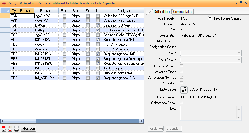 Date Modif.: Uniquement en consultation. Date de dernière modification de la table de valeurs. Une génération ou une modification du contenu ne sont pas considérées comme une modification, par contre la modification de structure l’est.