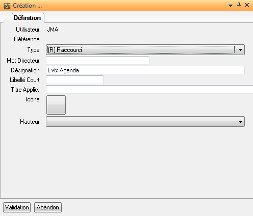 Créer un raccourci : Ouvre la fiche de définition d’un raccourci DIAPASON