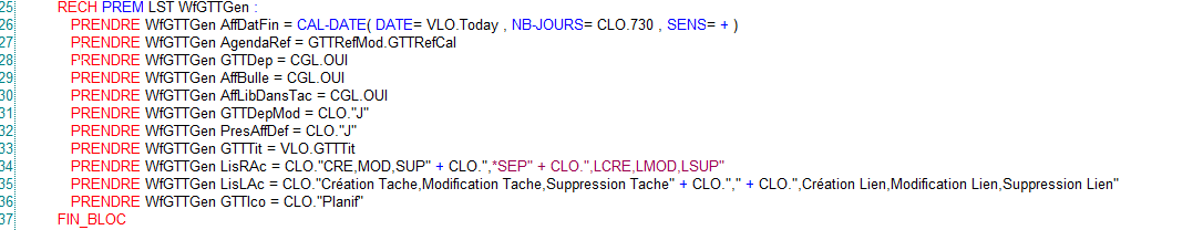 • WfGTTLis : elle comprend la description des colonnes du Gantt partie liste.