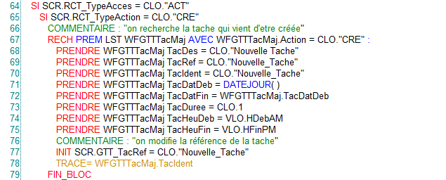 • WfGTTLieMaj : elle comprend toutes les relations entre les tâches impliquées par l’action en cours.