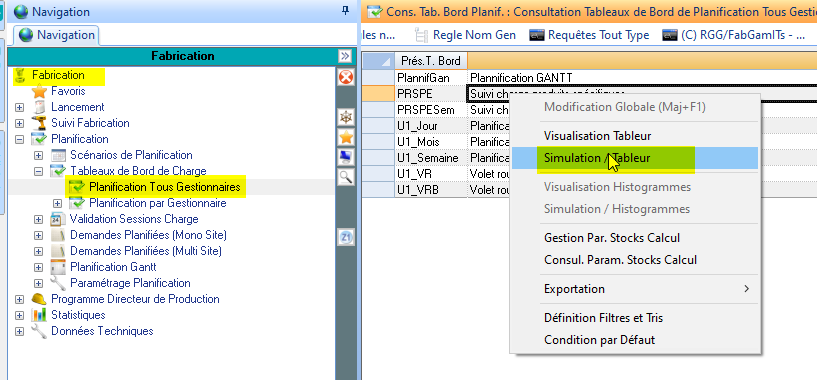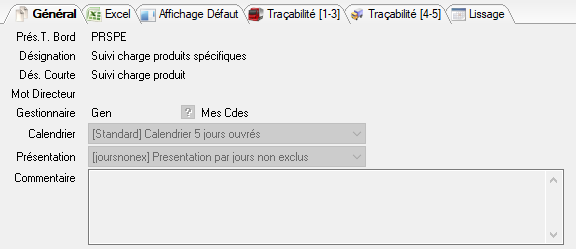Les tableaux de bord de charge permettent de présenter les charges calculées par la planification (ou par le calcul du Plan Directeur de Production), il convient de constituer des présentations personnalisées de tableaux de bord de charge.