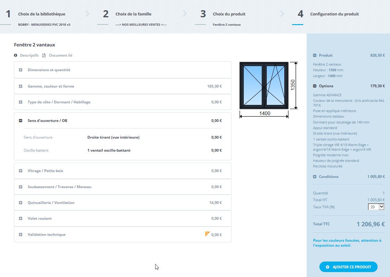 Ainsi, dans DIAPASON va s'ouvrir un onglet contenant le configurateur en ligne, et vous allez pouvoir configurer votre produit.