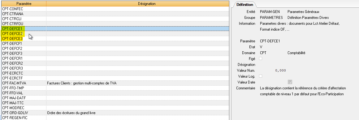 Paramètre CPT-DEFC1/DEFEC2/DEFCE3
