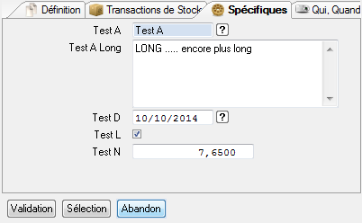 « Onglet Spécifiques »