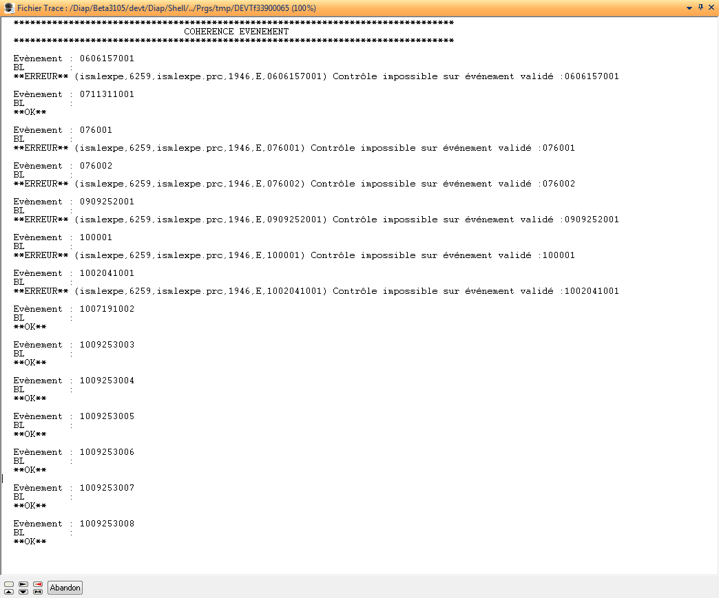 Le résultat de la fonction de contrôle est présenté dans une trace telle que :
