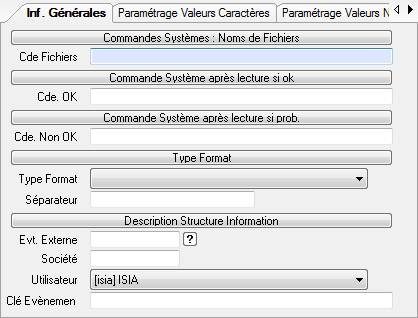 Similaire la réception d’un événement, mais le support d’entrée est un fichier. Le premier onglet regroupe les données générales permettant la lecture et le traitement du fichier.
