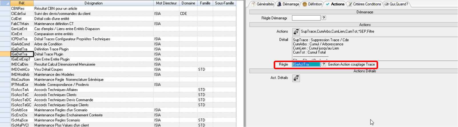 Les actions sont ensuite définies comme dans le moteur RCT:
