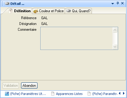Onglet « Définition » :
