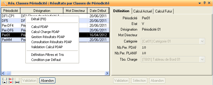 Calcul Charge PDAP: Cette fonction permet de lancer, pour la classe de périodicité courante le calcul de charge en prenant en compte les résultats du PDAP.