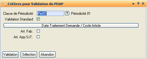 Indique si on souhaite ou non faire une validation standard. Cette zone est initialisée à Oui par défaut.