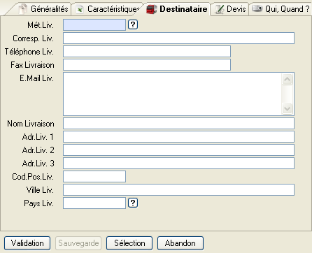 Onglet « Destinataire »