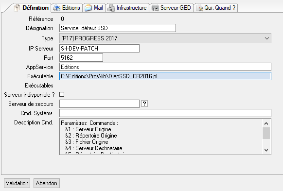 « Cmd. Système » sur l’onglet Définition : exécutée après l’édition sur le serveur d’édition.