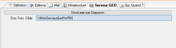 Dos. Trav. Cible : Chemin complet du dossier de travail cible du serveur de GED vu depuis le serveur de services correspondant au répertoire de travail des serveurs de GED.