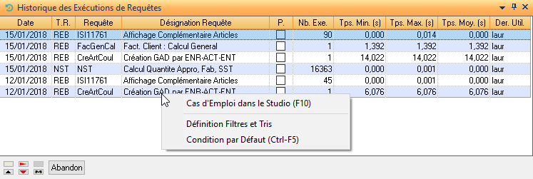 Cette historique permet de connaître la fréquence d’utilisation et les temps d’exécution de certaines requêtes et requêtes de calcul.