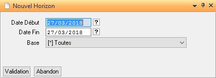 L’action « Horizon » permet d’élargir la période (date début et date de fin) à visionner et de filtrer une base en particulier.