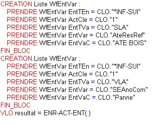 Liste WfEntVar : (O : indique si obligatoire (valeur o) ou non)