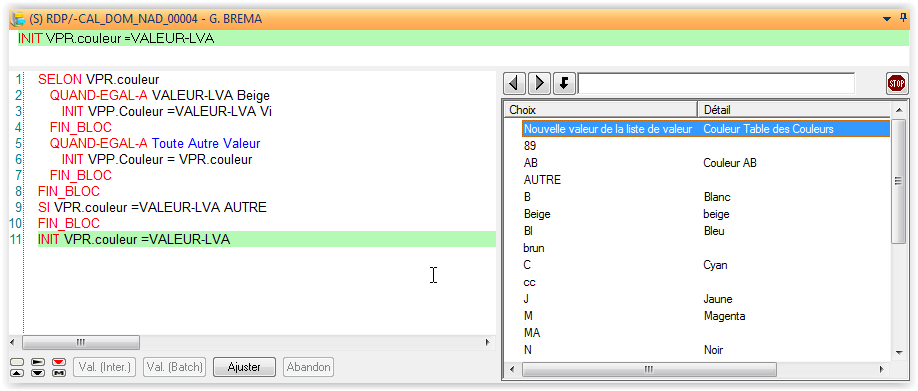 Dans les requêtes de type RDP, si une liste de valeurs manuelle est associée à la variable en cours, les valeurs de la liste de valeurs sont proposées automatiquement pour choix. Il est possible de créer, depuis la liste des choix, des nouvelles valeurs dans la liste de valeurs.