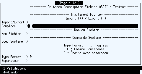 Accès à l’écran de saisie d’indication du fichier à importer et de sa structure (format Progress, ...) :