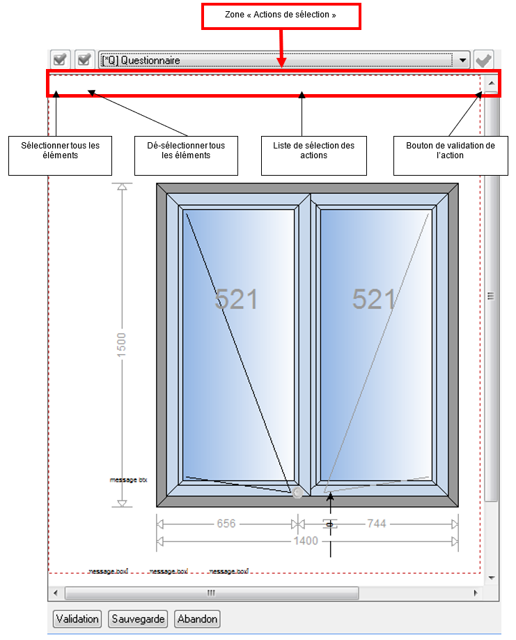 Sur l’action de sélection *Q (Questionnaire), on ne peut ni sélectionner d’éléments ni valider l’action.