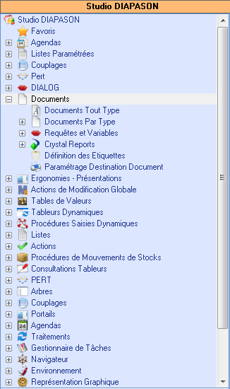 La configuration des documents DIAPASON s’effectue à partir de l’explorateur applicatif « Studio Diapason ».