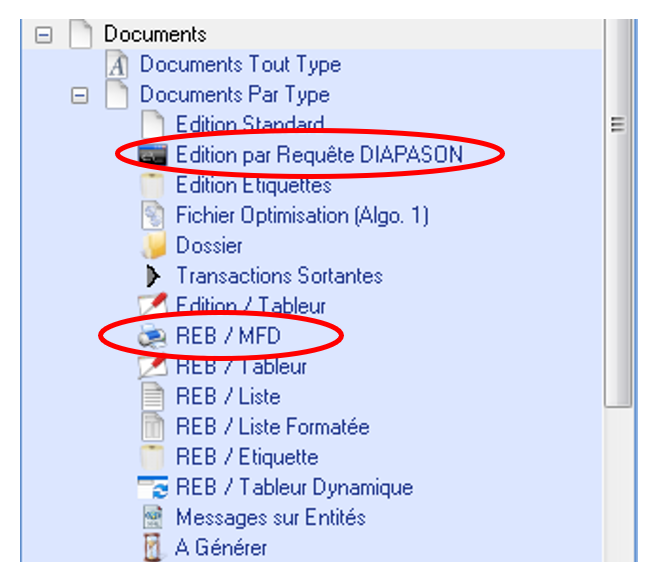 ATTENTION : Une édition de type Office ne peut s’effectuer que sur des documents de type 1 (Edition par requête Diapason) ou 6 (REB/MFD).